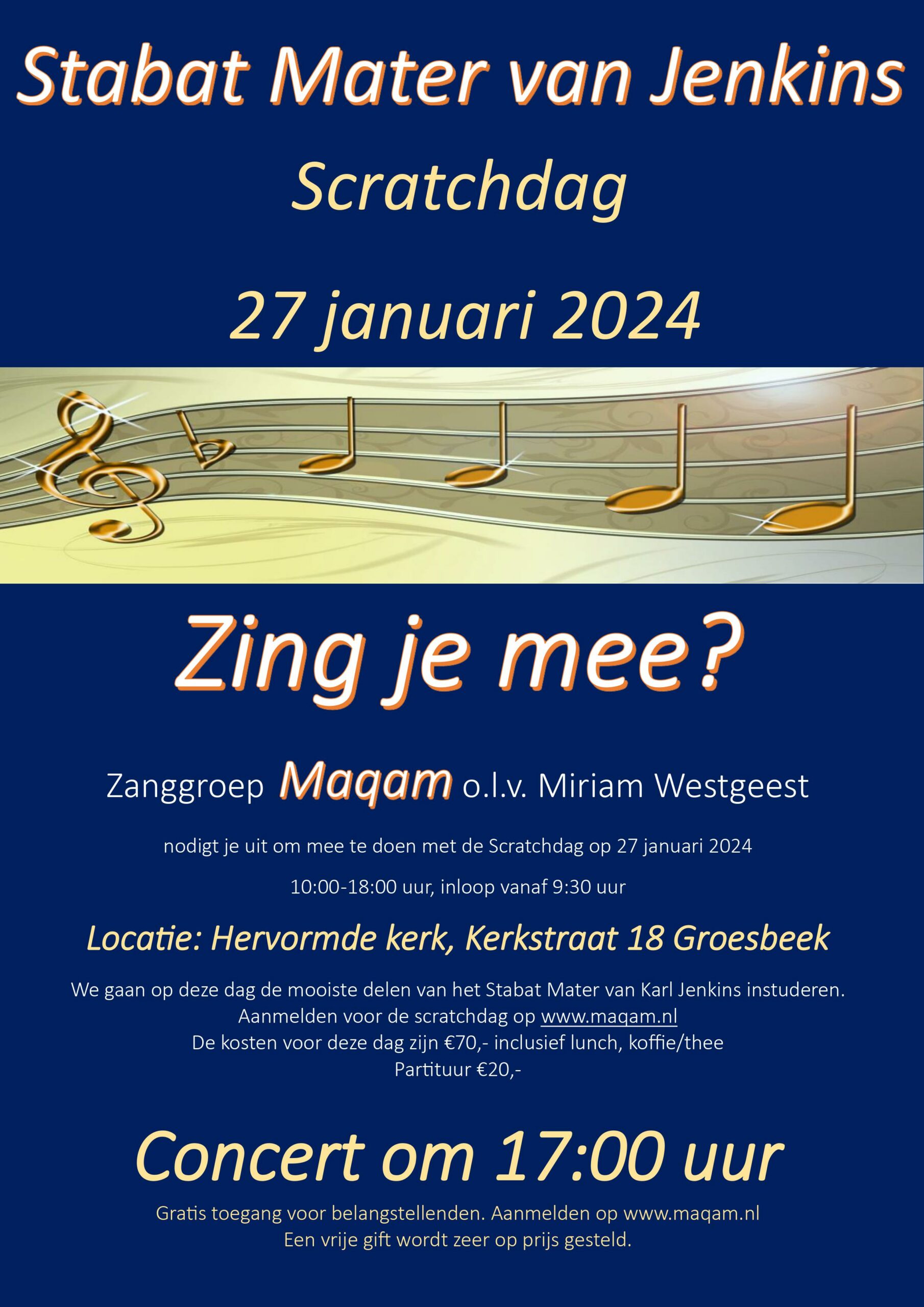 Onder leiding van Miriam Westgeest, met de vaste leden van Zanggroep Maqam en een groot aantal enthousiaste amateurzangers gaan we een koorwerk instuderen én aan het einde van de middag uitvoeren voor publiek. Maqam zorgt voor een passende ambiance: koffie, thee, lunch en natuurlijk begeleidende musici.